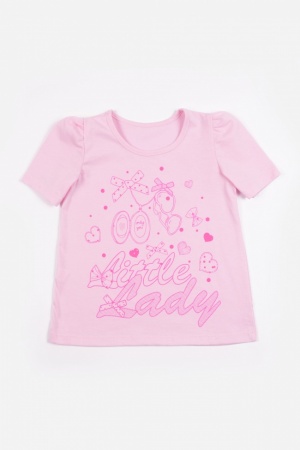 Нежная, красивая футболка из кулирного полотна с печатным принтом по переду. Рукава - фонарики. Кулирная футболка идеально подходит для летних прогулок или похода в детский сад.